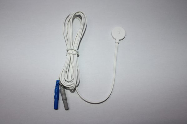 Sensor piezoeléctrico diseñado específicamente para detectar vibraciones generadas por el ronquido durante estudios polisomnográficos (PSG). Cuenta con un cable flexible y resistente al movimiento, con terminación en conector Touch-Proof estándar de seguridad, compatible con diversos equipos de polisomnografía.